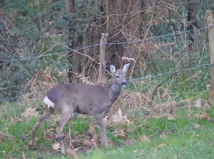 21-01 Una corza cerca de la tejonera. Unas 25 torcaces en la punta de un fresno grandes que empieza a sacar la hoja. Avellanos, robles y fresnos despistados empiezan a sacar la hoja. El mirlo está haciendo el nido en el corredor ecológico. El cárabo canta a las cuatro de la tarde. Mucho diente de león en flor. Empiezan las mariquitas. Chillan de nuevo los zorros. Empiezan a cantar los sapos parteros más a menudo. Empieza a cantar el verderón, y por la noche maúlla la cáraba.