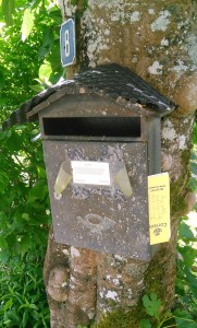 Nido de carboneros en un buzón. Nota del cartero: “En el buzón hay pollitos, dejo las cartas en el otro hasta que vuelen”.